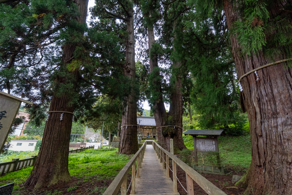 あやとり橋手前に車を停めて対岸へ。あやとり橋は面白く、大聖寺川の本流には大きな力を感じる。近くの栢野大杉は極めて立派な大杉で立ち寄ってしまった。