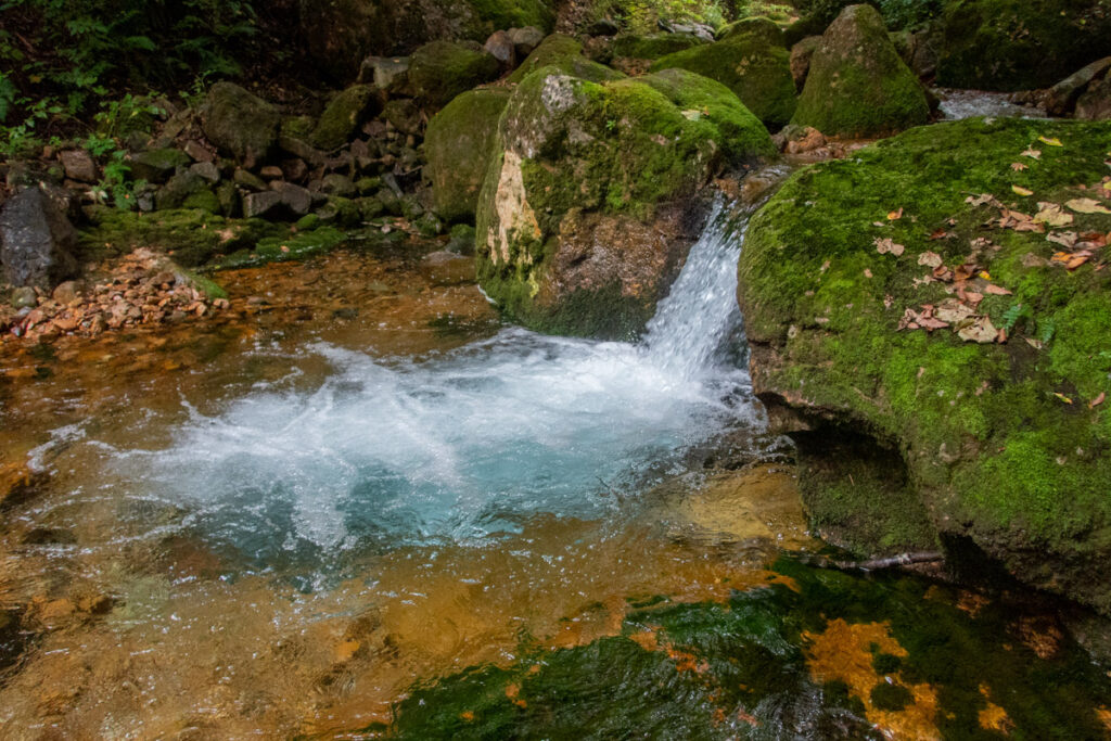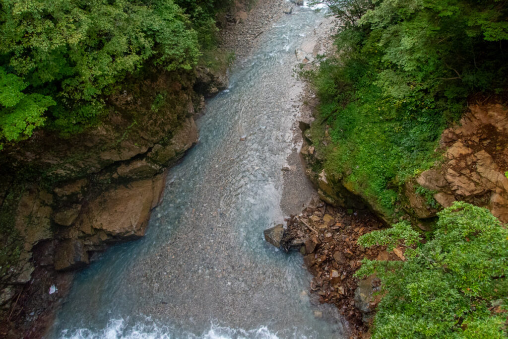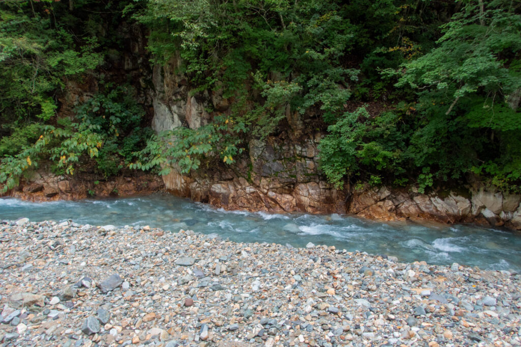 清津川本流はミルキーブルーな色合いで、側壁も見応えがある。