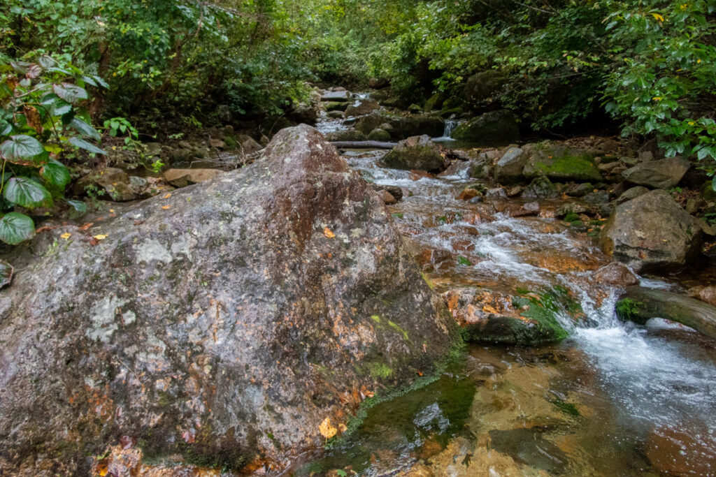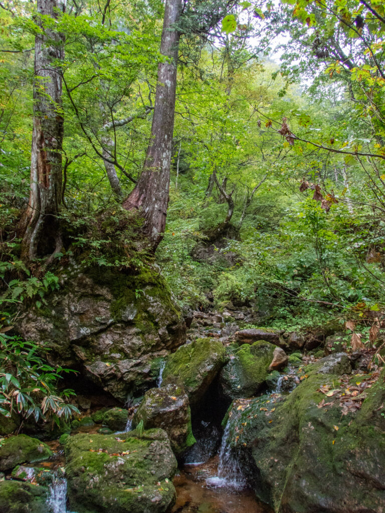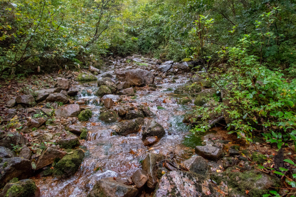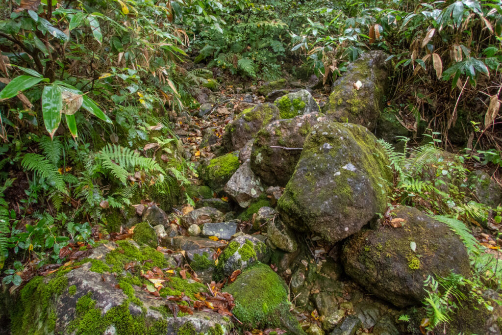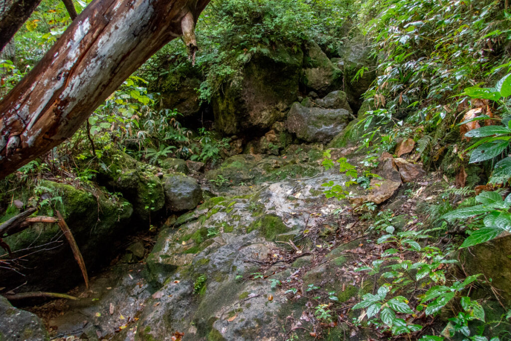 標高1300mに差し掛かると急に水が枯れて、まるで登山道のような渓相に変わる。