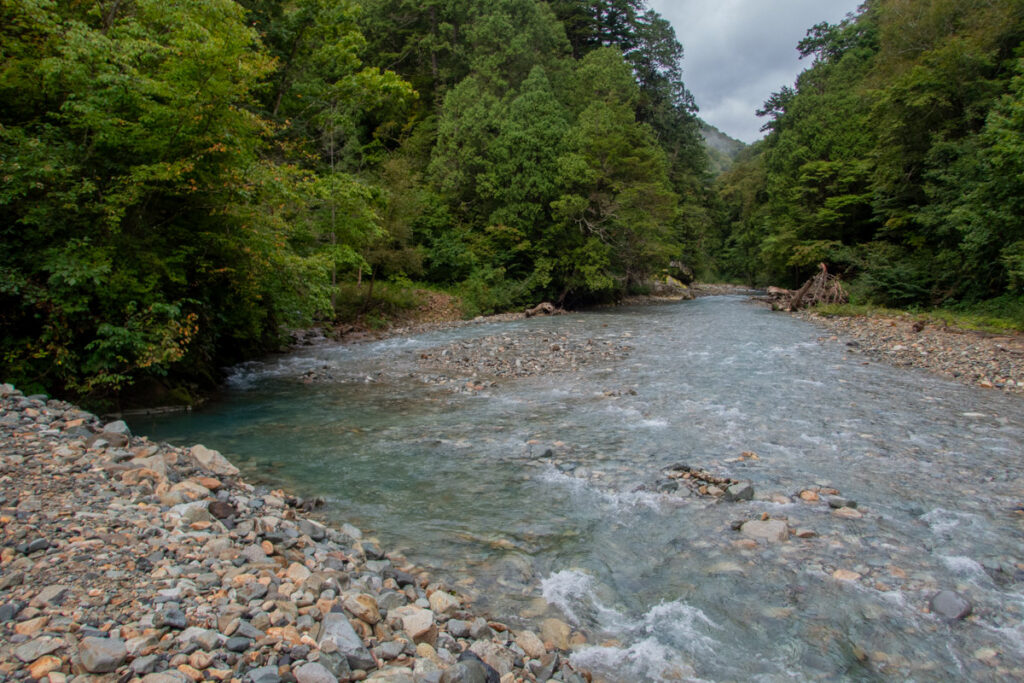 棒沢の釜段の滝が気になってはいたが、今回は訪問せず河原に降りる。