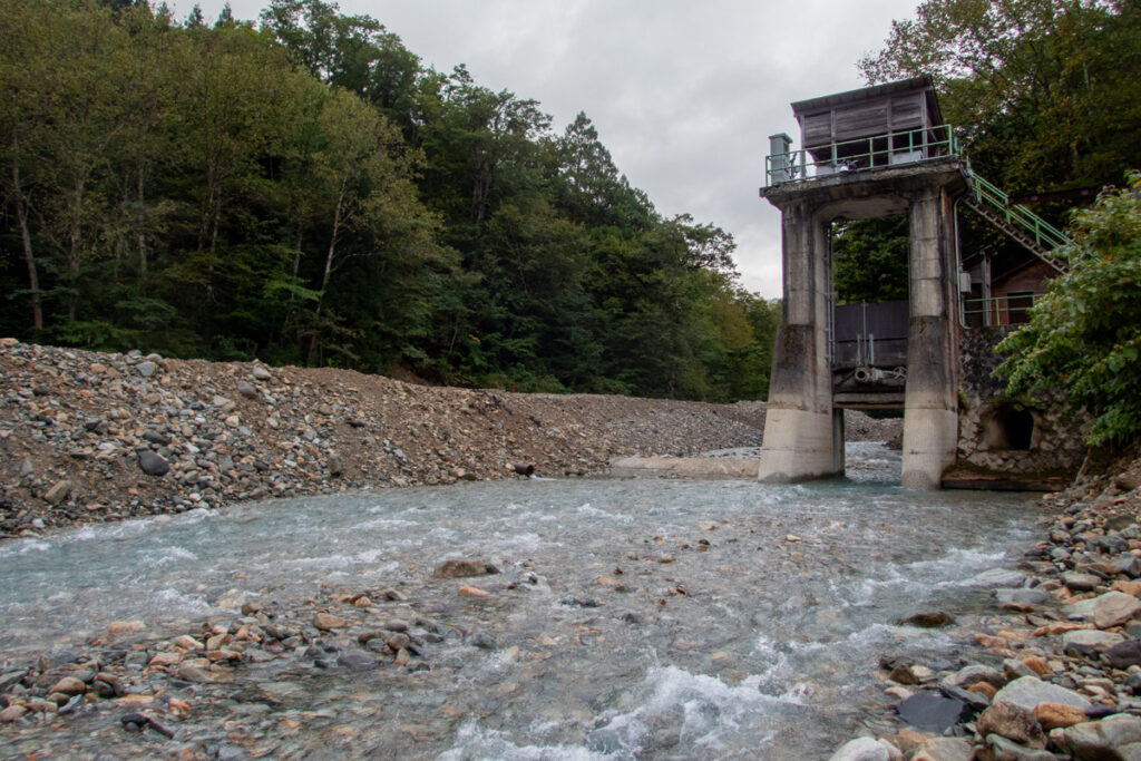 ゲートは巨大堰堤上の橋の手前にあるが、堰堤上では現在工事中であり、水力発電の環境維持のためのメンテが図られていた。