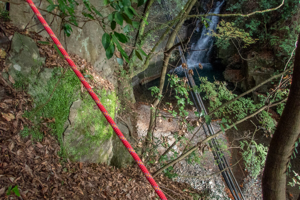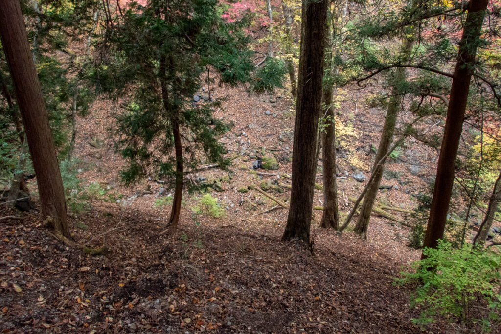 ここは右岸の尾根状を少し下り、滝を斜め上から見るところから、