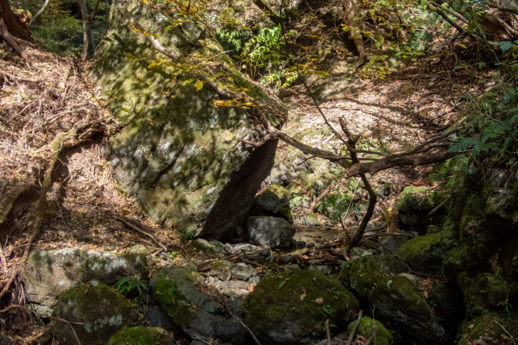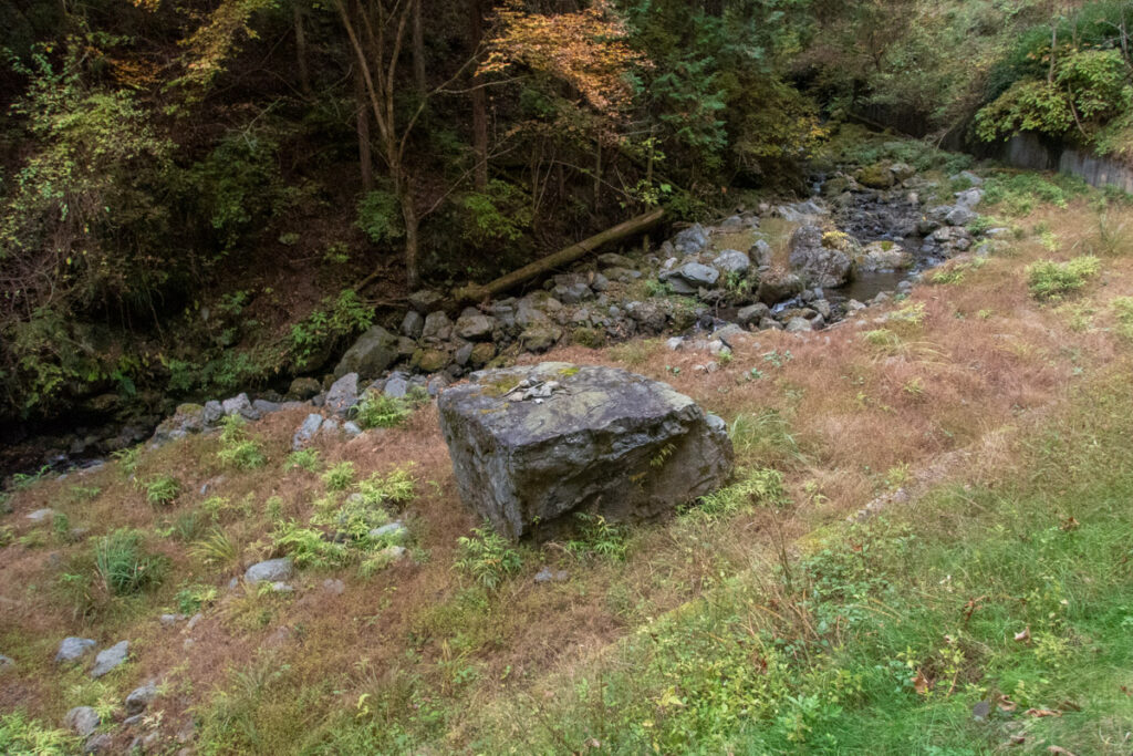 大蔵沢の出合い付近には昭和石材工業所さんが展開されているので、