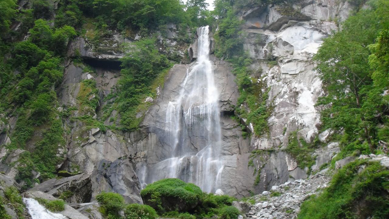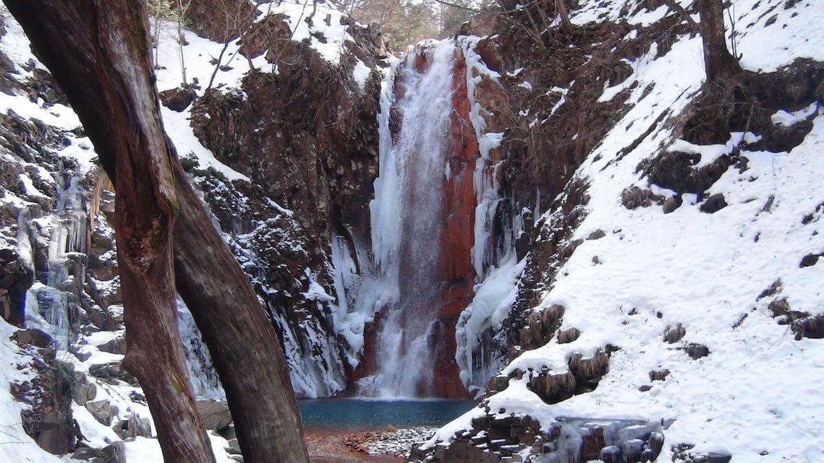 雪解けの季節は隣にハンノキ滝500Mが落ちる。