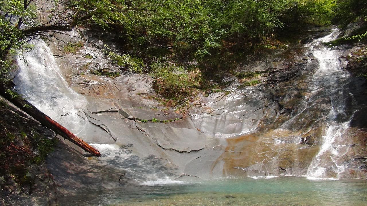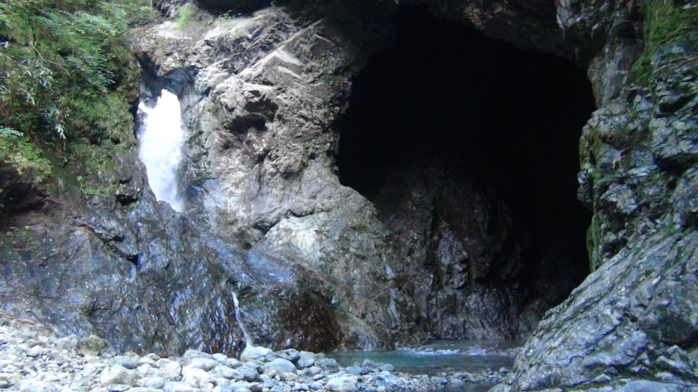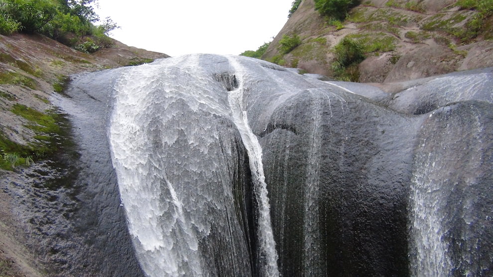 三重県。トルネードに抉られたゴルジュ内の滝。